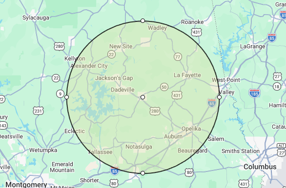 We proudly serve the Auburn-Opelika region and surrounding communities in Lee, Tallapoosa, and Chambers Counties, including: